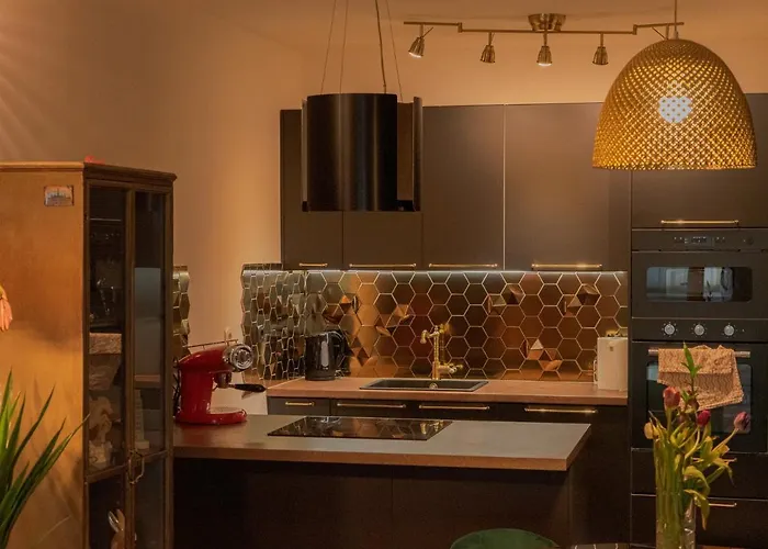 Along with tea/coffee making equipment, the apartment is equipped with a full kitchen that includes a microwave, a refrigerator, and kitchenware. The 48 m^2 apartment is adjacent to Domovinskog rata - Pujanke bus station.